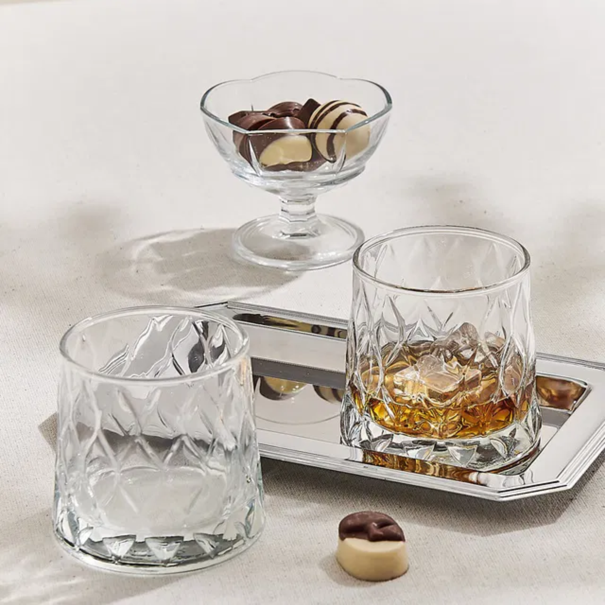 Crystal is the material of choice for high-end sets. It stands out for its exceptional transparency, musical resonance, and dazzling light. Ideal for special occasions or to embellish daily life with a luxurious touch.